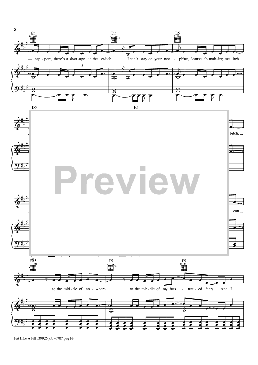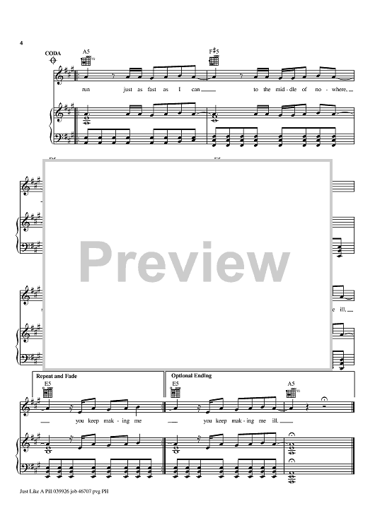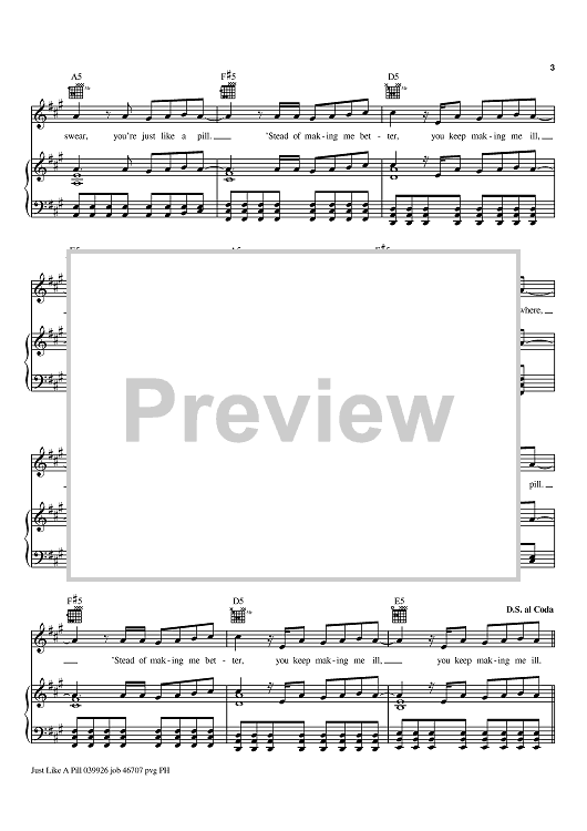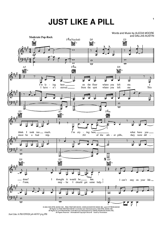 Digital Sheet Music for Just Like A Pill by Dallas Austin, Pink scored for Piano/Vocal/Chords; id:367799