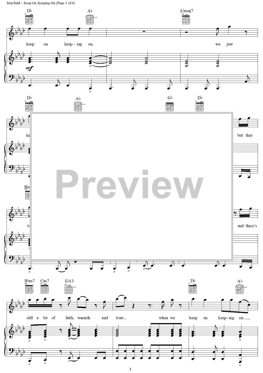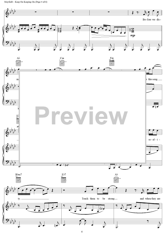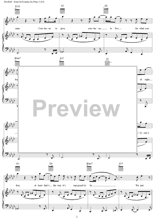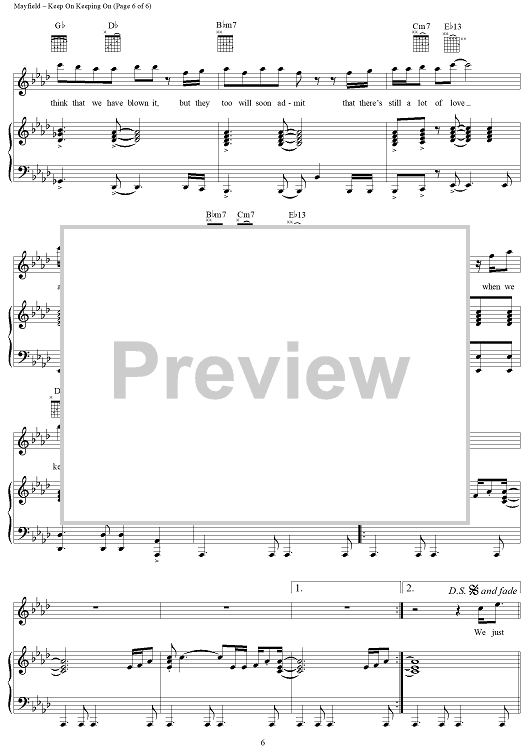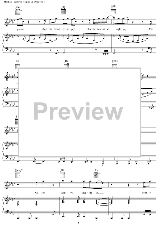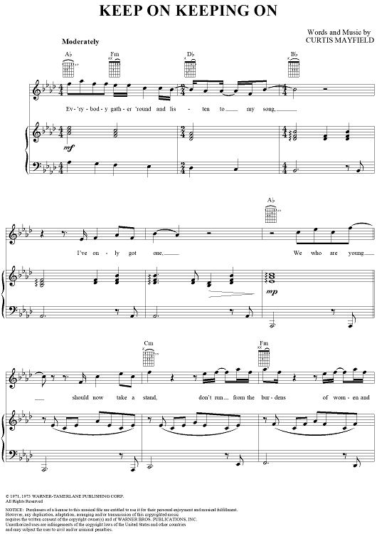Digital Sheet Music for Keep On Keeping On by Curtis Mayfield scored for Piano/Vocal/Chords; id:120704