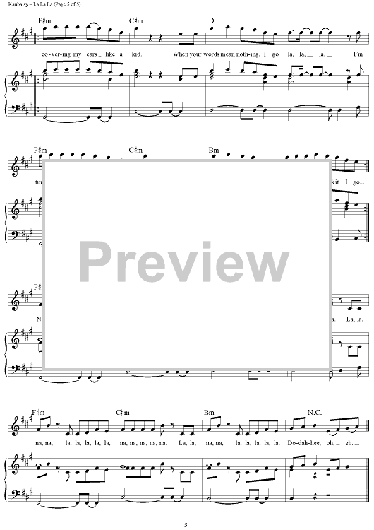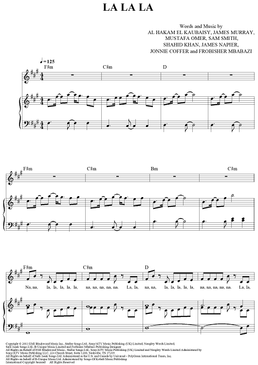 Digital Sheet Music for La La La by Sam Smith, James Napier, Al Hakim El Kaubaisy, James Murray, Mustafa Omer, Shahid Khan, Jonny Coffer, Frobisher Mbabazi scored for Piano/Vocal/Chords; id:445156