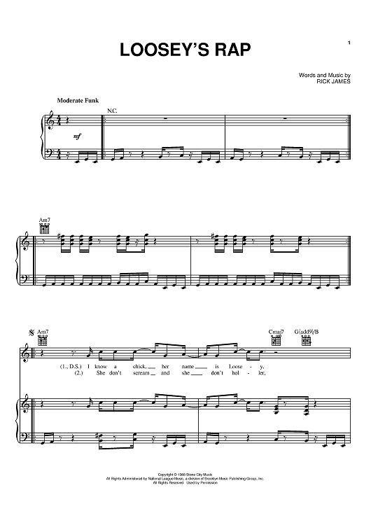 Digital Sheet Music for Loosey's Rap by Rick James scored for Piano/Vocal/Chords; id:370105