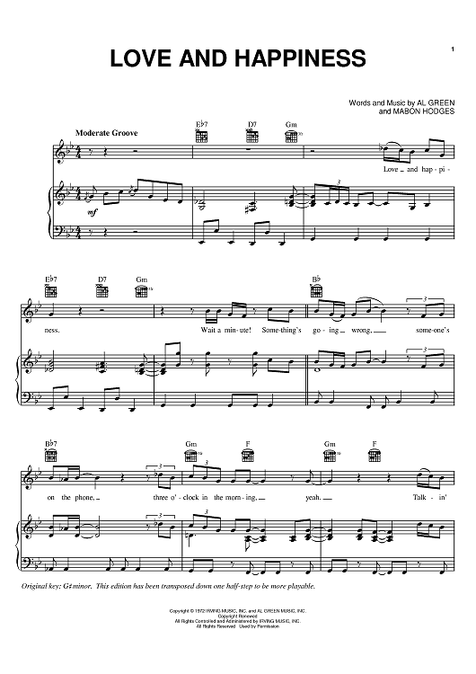 Digital Sheet Music for Love And Happiness by Al Green, Mabon Hodges scored for Piano/Vocal/Chords; id:369001