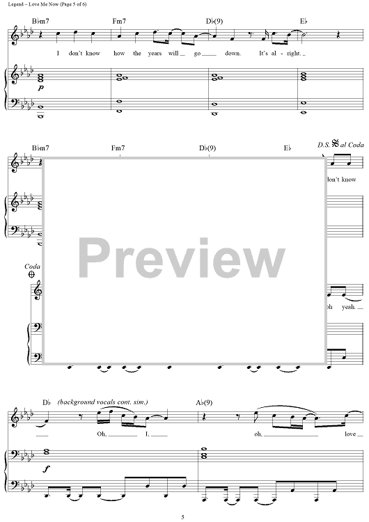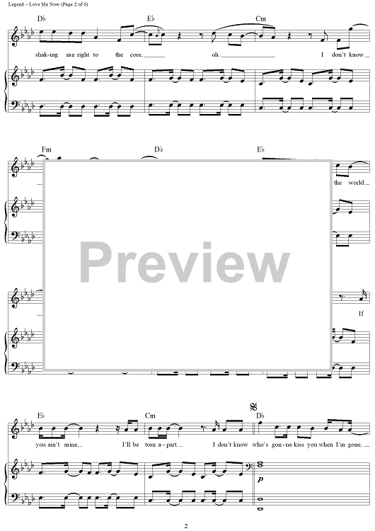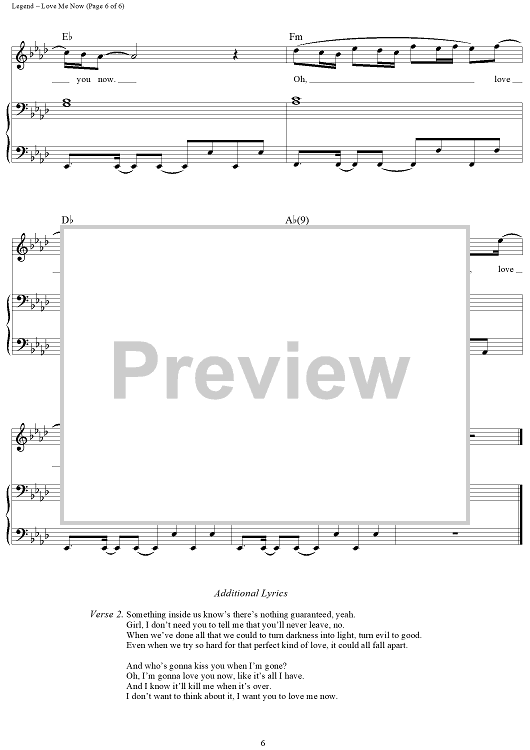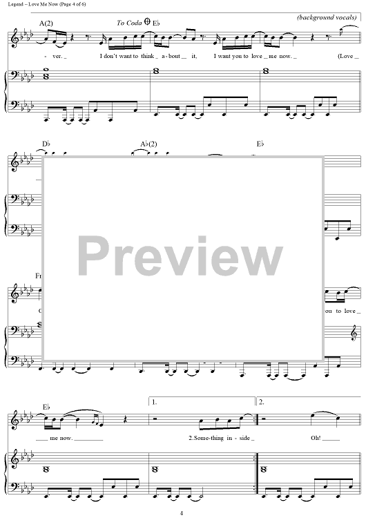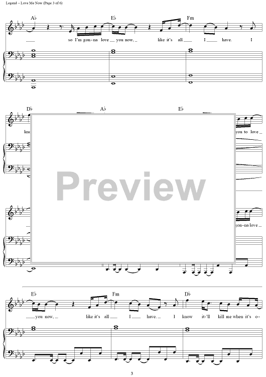 Digital Sheet Music for Love Me Now by John Legend scored for Piano/Vocal/Chords; id:462619
