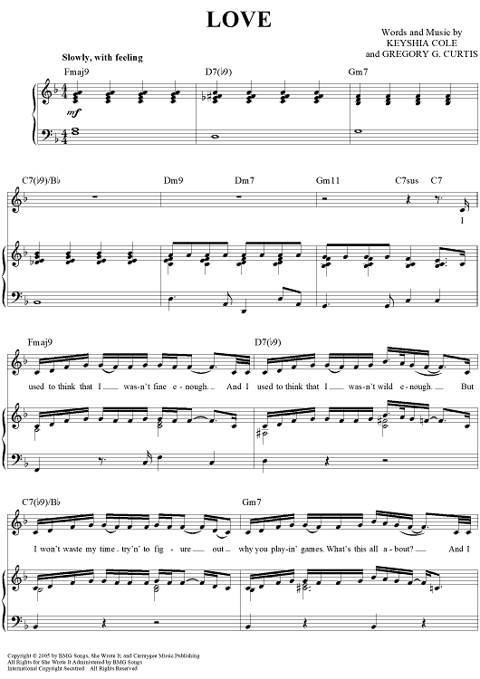 Digital Sheet Music for Love by Keyshia Cole, Greg Curtis scored for Piano/Vocal/Chords; id:388964
