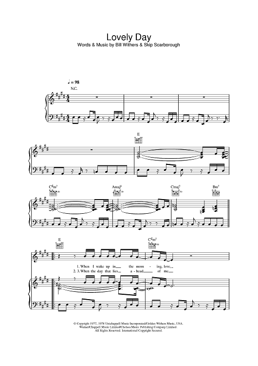 Digital Sheet Music for Lovely Day by Bill Withers, Skip Scarborough scored for Piano/Vocal/Chords; id:385358