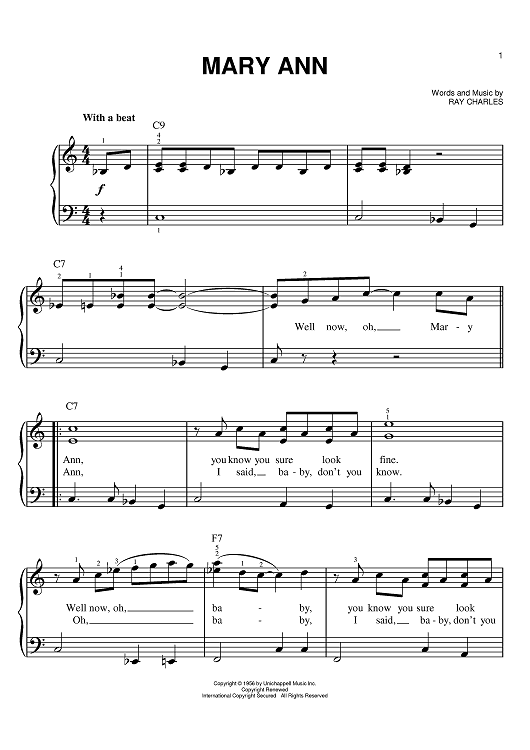 Digital Sheet Music for Mary Ann by Ray Charles, Michael Bloomfield scored for Easy Piano; id:388539