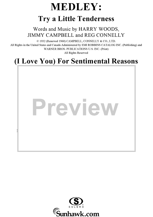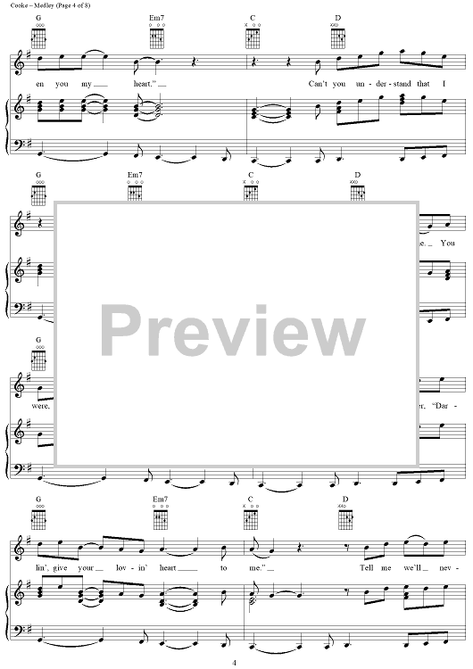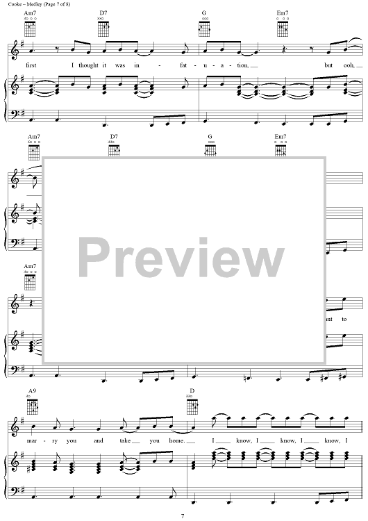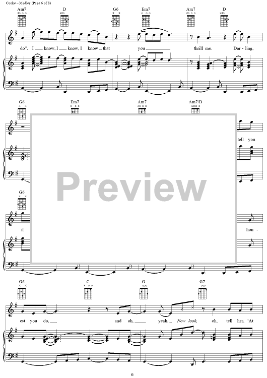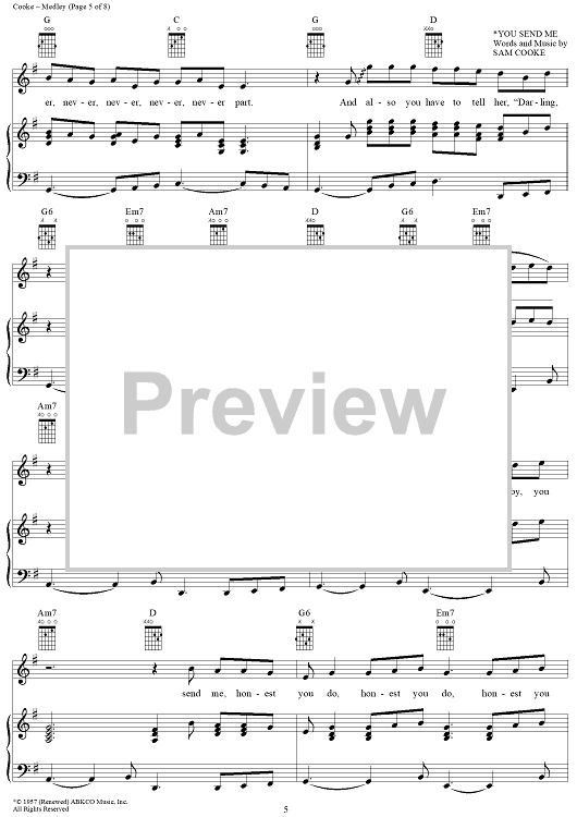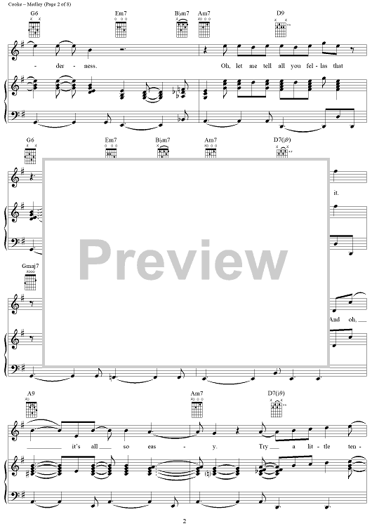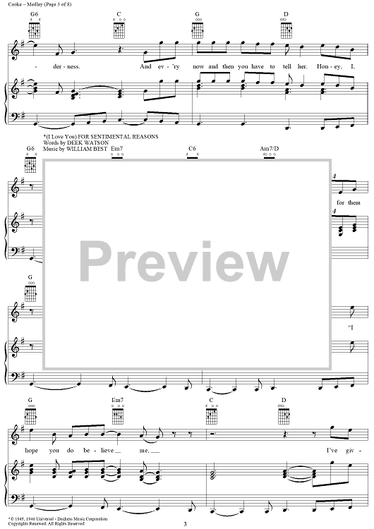 Digital Sheet Music for Medley: Try a Little Tenderness, (I Love You) For Sentimental Reasons, You Send Me by Sam Cooke scored for Piano/Vocal/Chords; id:304389