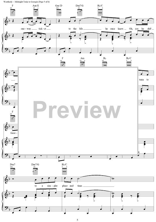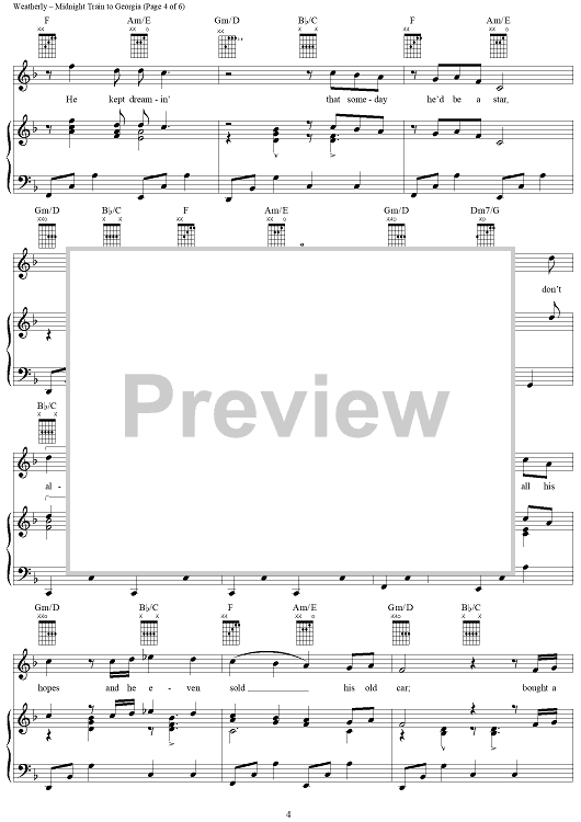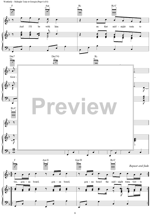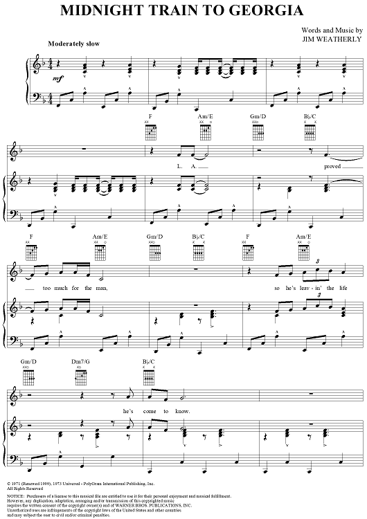 Digital Sheet Music for Midnight Train to Georgia by Gladys Knight, Jim Weatherly scored for Piano/Vocal/Chords; id:289856