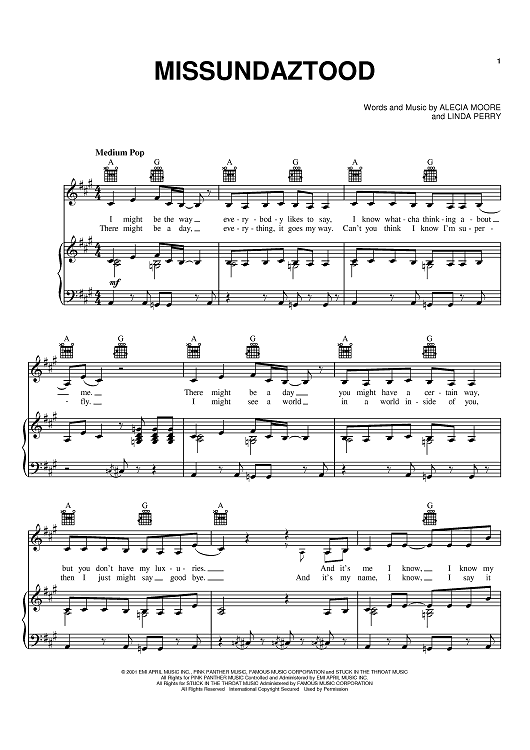 Digital Sheet Music for Missundaztood by Linda Perry, Pink scored for Piano/Vocal/Chords; id:367796