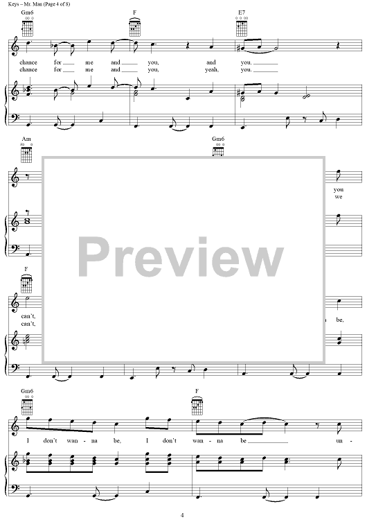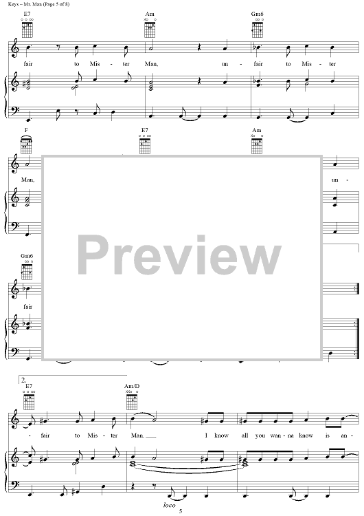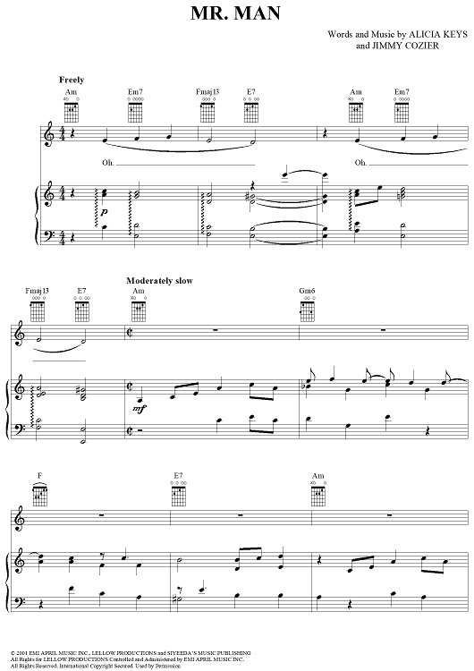 Digital Sheet Music for Mr. Man by Alicia Keys, Jimmy Cozier scored for Piano/Vocal/Chords; id:367336