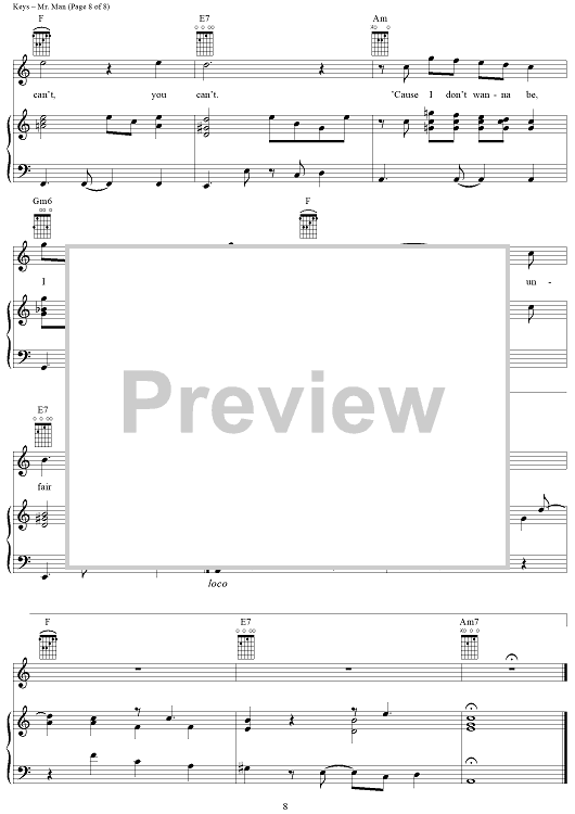 "Mr. Man" Sheet Music by Alicia Keys