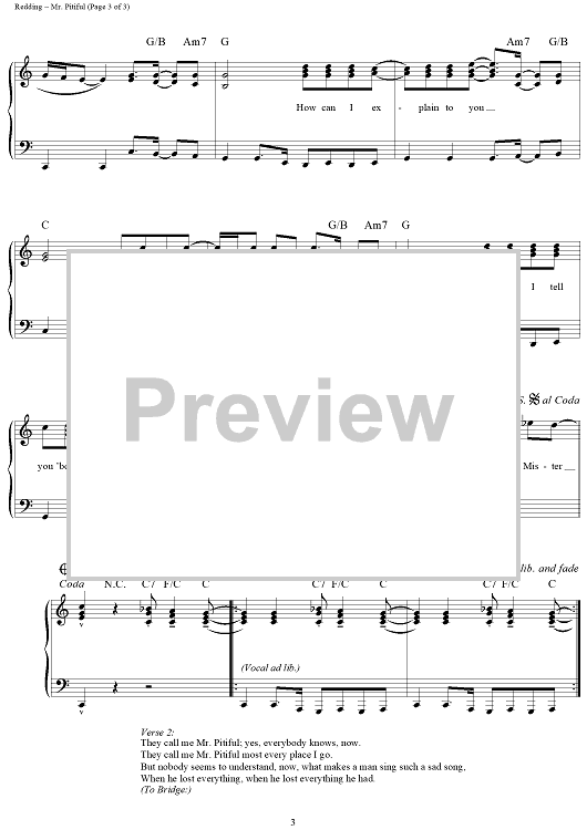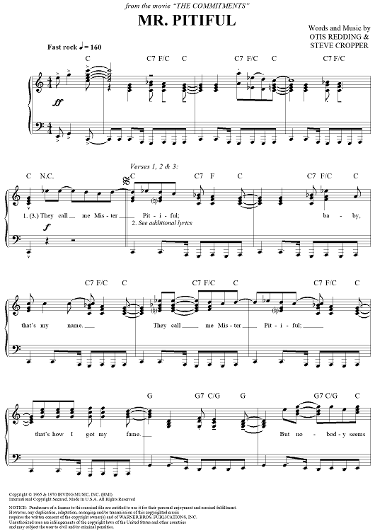 Digital Sheet Music for Mr. Pitiful by Otis Redding, Steve Cropper scored for Piano/Vocal/Chords; id:255715