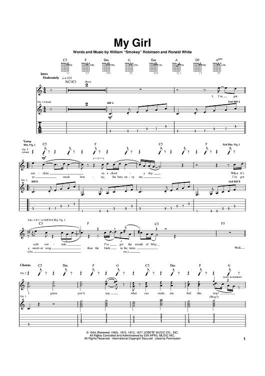 Digital Sheet Music for My Girl by Smokey Robinson, Ronald White, The Temptations scored for Guitar Tab; id:367894
