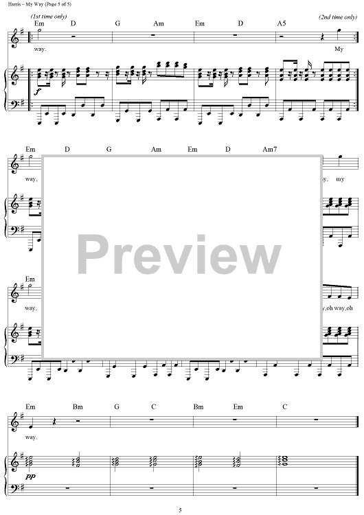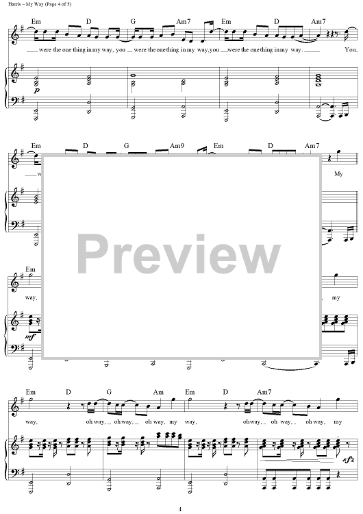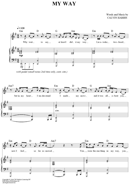 Digital Sheet Music for My Way by Calvin Harris scored for Piano/Vocal/Chords; id:461331