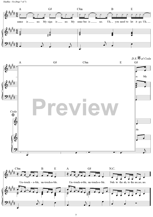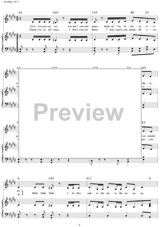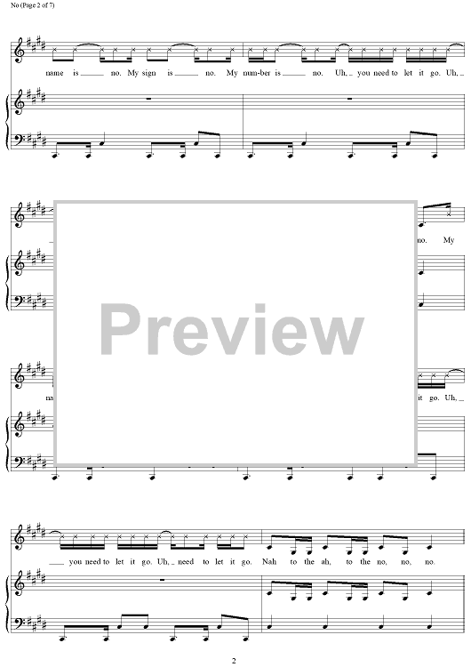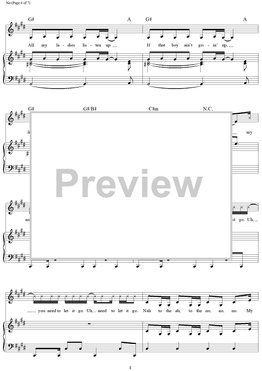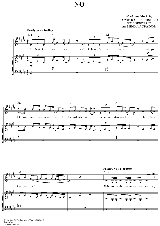 Digital Sheet Music for No by Jacob Hindlin, Eric Frederic, Meghan Trainor scored for Piano/Vocal/Chords; id:457564
