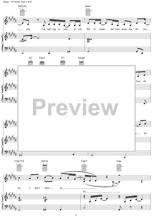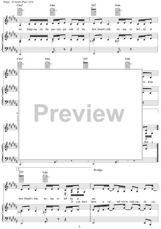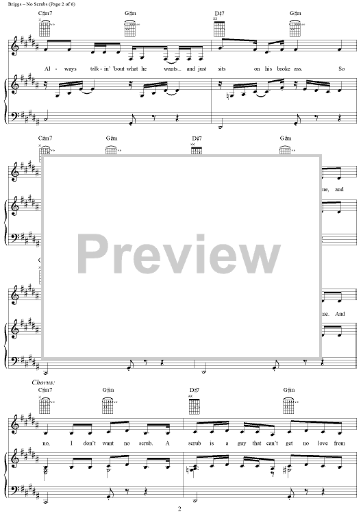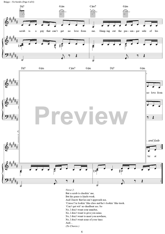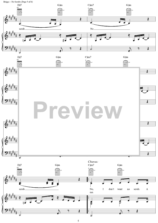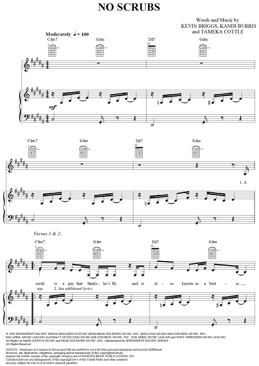 Digital Sheet Music for No Scrubs by Kevin Briggs, TLC, Tameka Cottle, Kandi Burruss scored for Piano/Vocal/Chords; id:115747