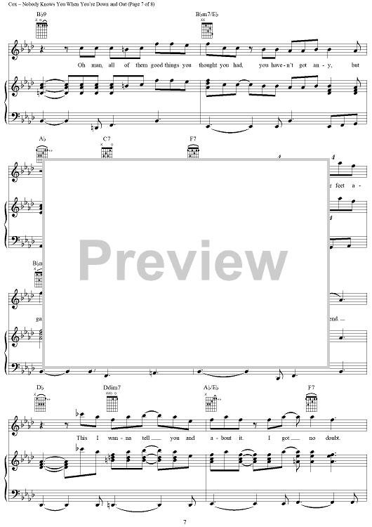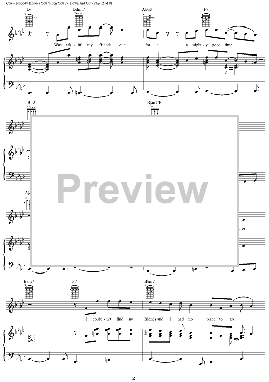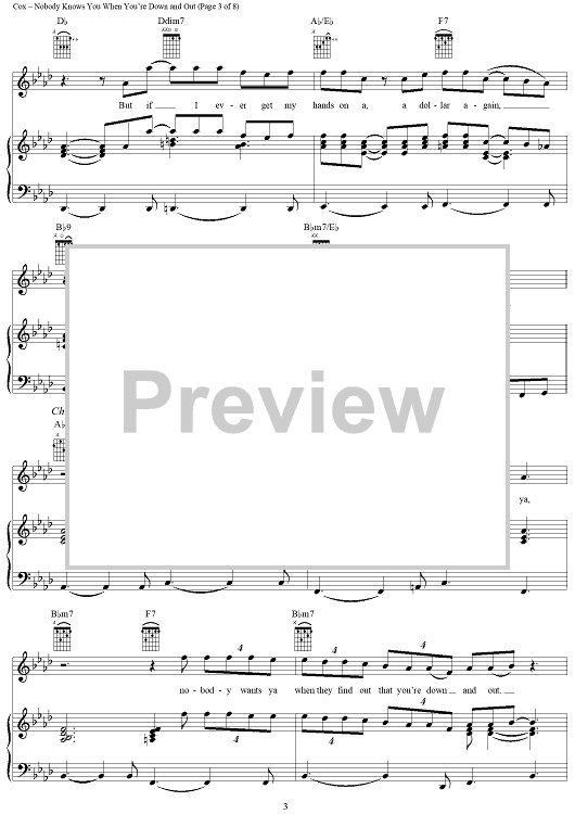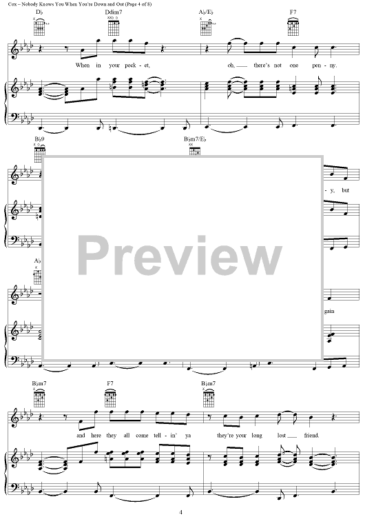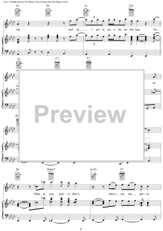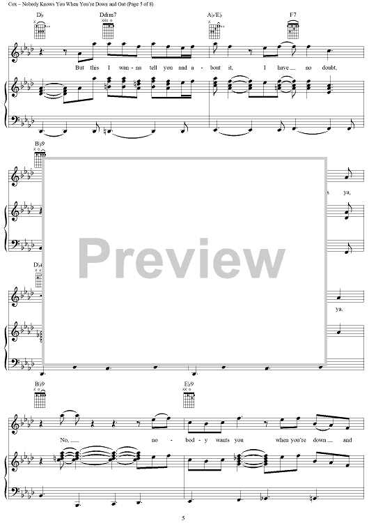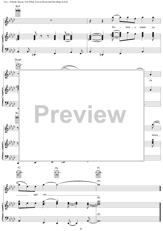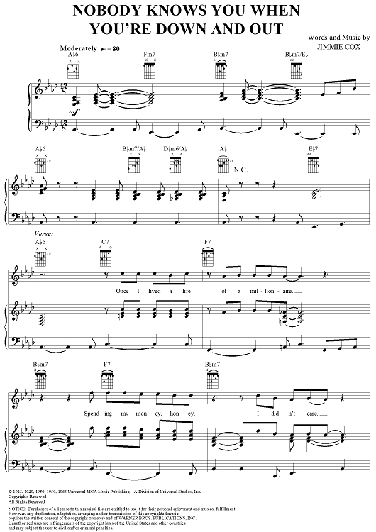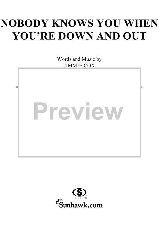 Digital Sheet Music for Nobody Knows You When You're Down and Out by Sam Cooke, Jimmy Cox scored for Piano/Vocal/Chords; id:304387