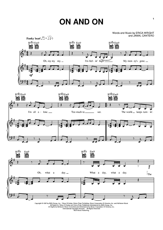 Digital Sheet Music for On And On by Erykah Badu, Jamal Cantero scored for Piano/Vocal/Chords; id:368345