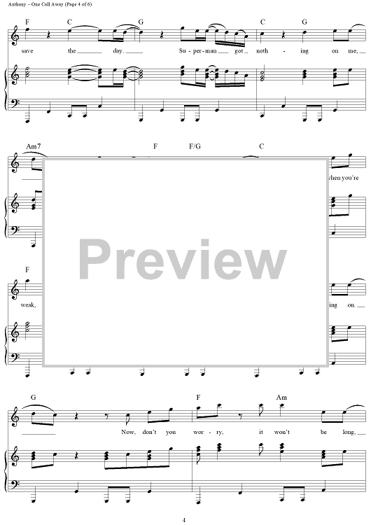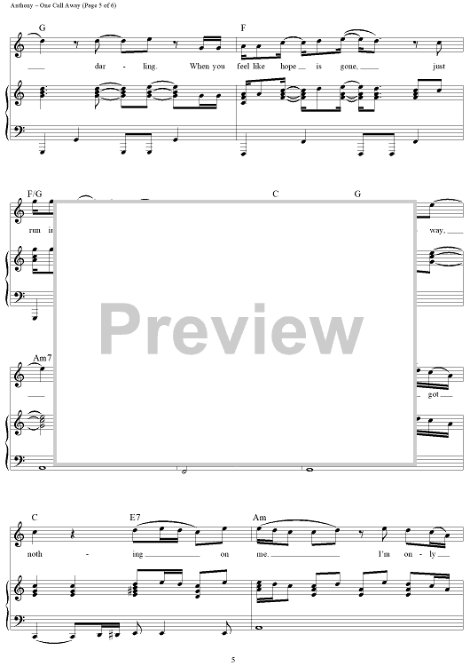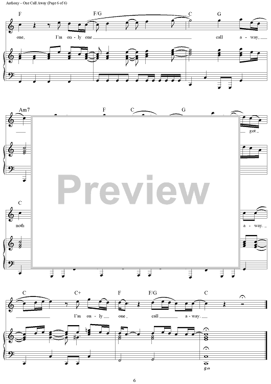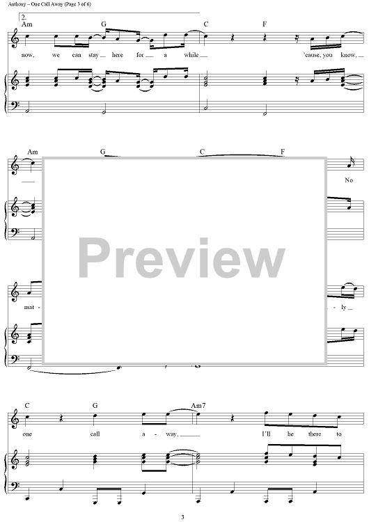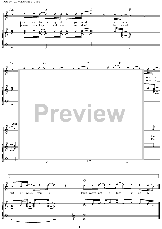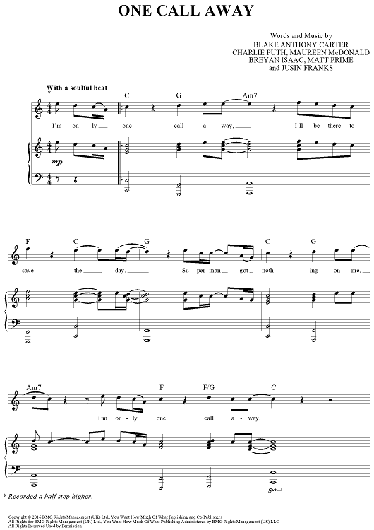 Digital Sheet Music for One Call Away by Justin Franks, Matt Prime, Breyan Stanley Isaac, Charlie Puth, Maureen McDonald, Shy Carter scored for Piano/Vocal/Chords; id:456952