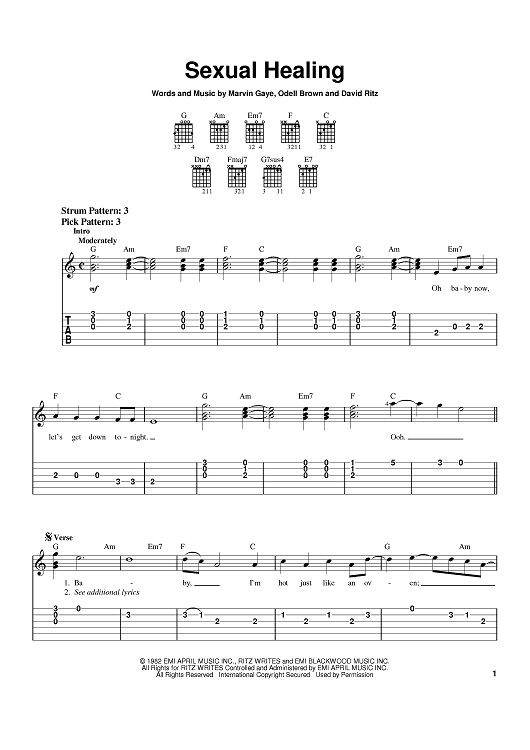 Digital Sheet Music for Sexual Healing by Marvin Gaye, Odell Brown, Max-A-Million, David Ritz scored for Easy Guitar; id:370214