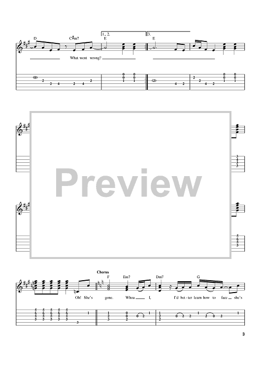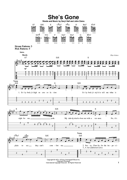 Digital Sheet Music for She's Gone by Daryl Hall, John Oates, Tavares scored for Easy Guitar Tab; id:379503