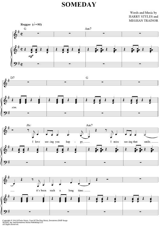 Digital Sheet Music for Someday by Michael Buble, Harry Styles, Meghan Trainor scored for Piano/Vocal/Chords; id:462972