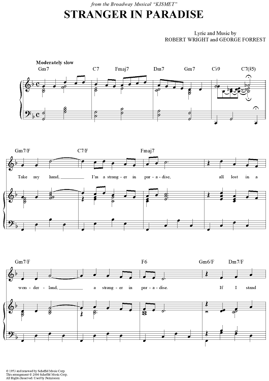 Digital Sheet Music for Stranger in Paradise by Tony Bennett, George Forrest, Robert Wright scored for Piano/Vocal/Chords; id:315280