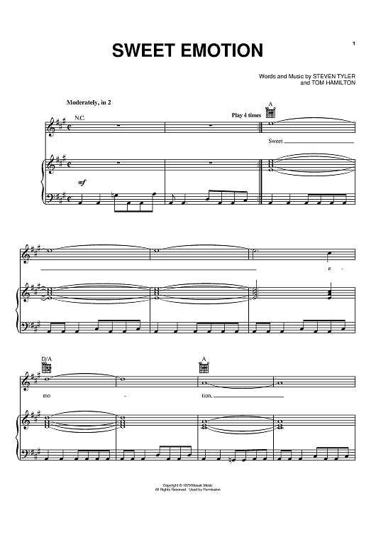 Digital Sheet Music for Sweet Emotion by Aerosmith, Steven Tyler, Tom Hamilton scored for Piano/Vocal/Chords; id:368503