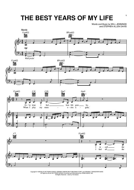 Digital Sheet Music for The Best Years Of My Life by Will Jennings, Diana Ross, Stephen Allen Davis scored for Piano/Vocal/Chords; id:373909