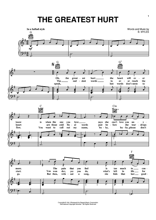 Digital Sheet Music for The Greatest Hurt by Jackie Wilson, B. Myles scored for Piano/Vocal/Chords; id:368436