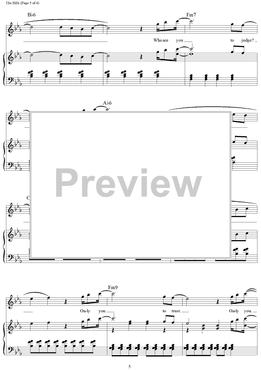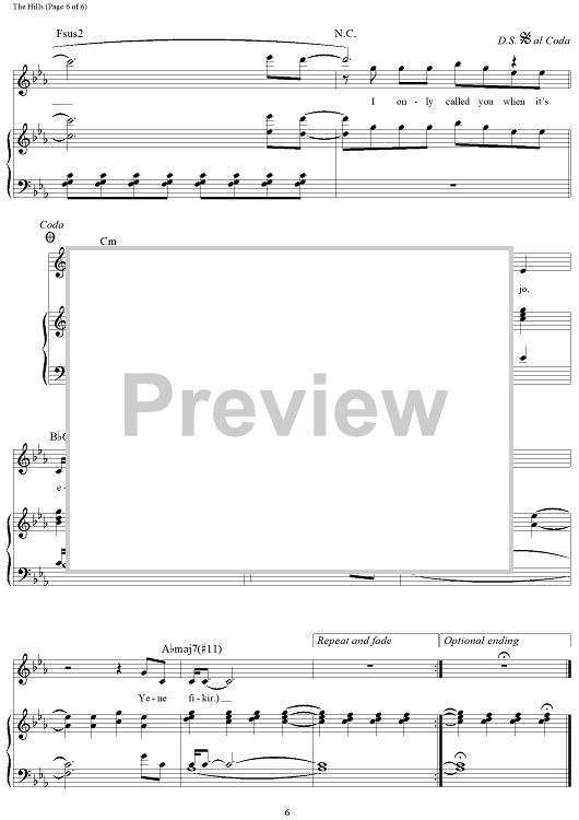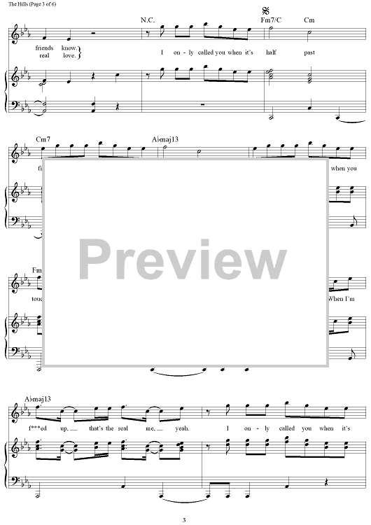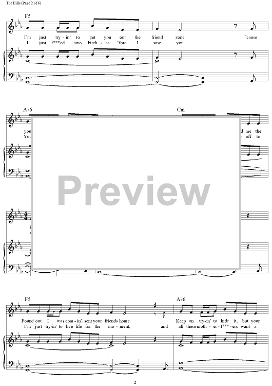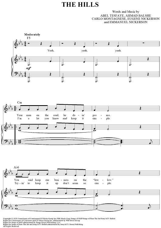 Digital Sheet Music for The Hills by Ahmad Balshe, Abel Tesfaye, The Weeknd, Carlo Montagnese, Eugene Nickerson, Emmanuel Nickerson scored for Piano/Vocal/Chords; id:456592