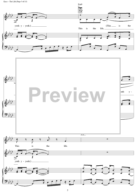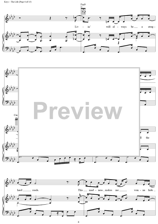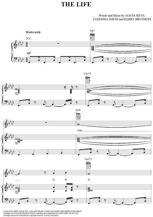 Digital Sheet Music for The Life by Alicia Keys, Kerry Brothers, Jr., Taneisha Smith scored for Piano/Vocal/Chords; id:367338