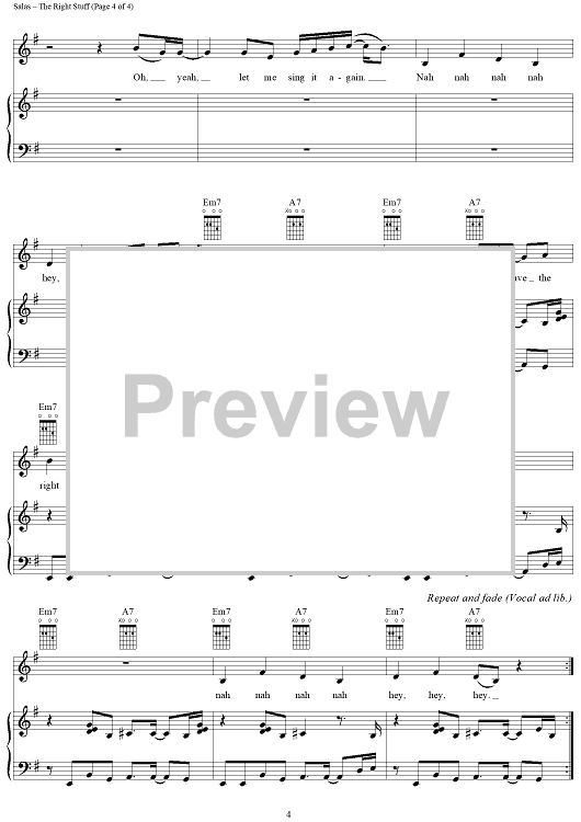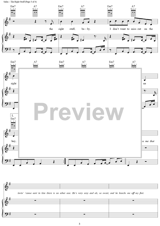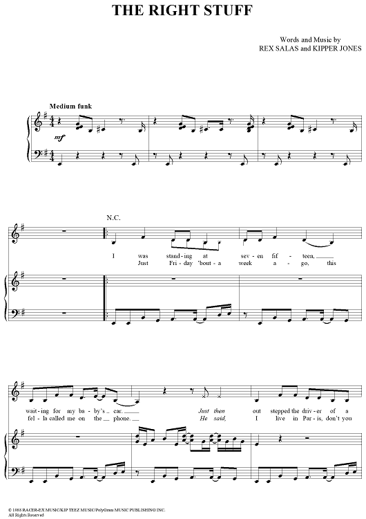 Digital Sheet Music for The Right Stuff by Vanessa Williams, Kipper Jones, Rex Salas scored for Piano/Vocal/Chords; id:366148