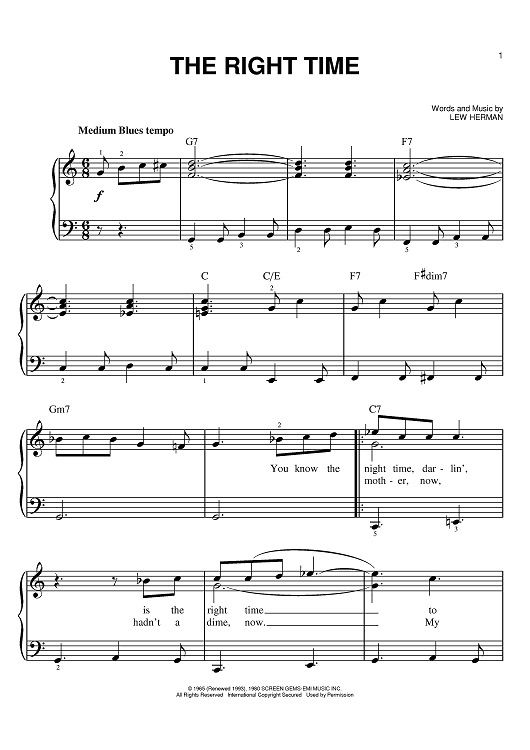 Digital Sheet Music for The Right Time by Ray Charles, Lew Herman scored for Easy Piano; id:388546