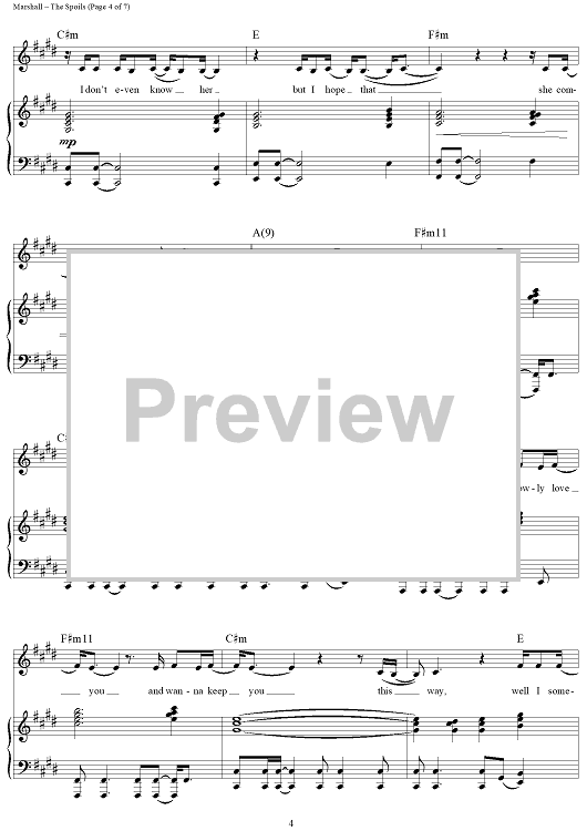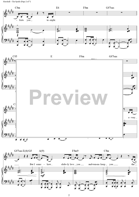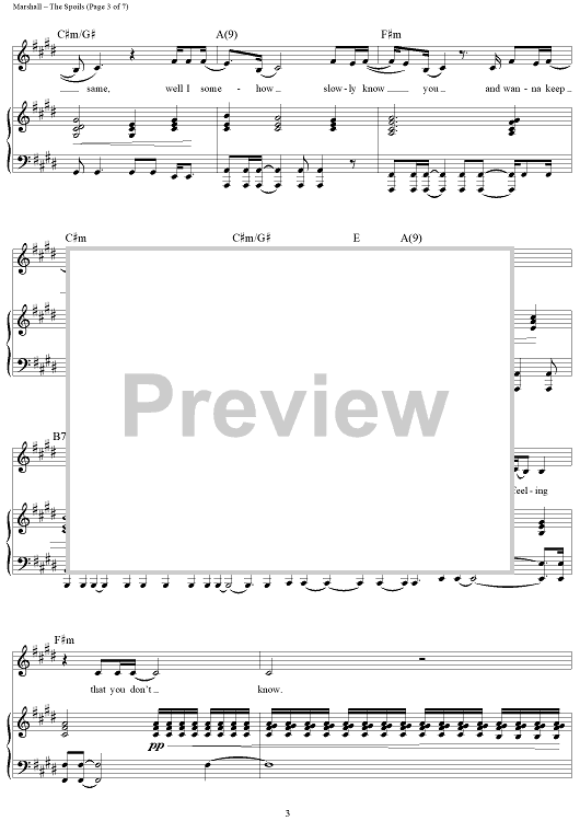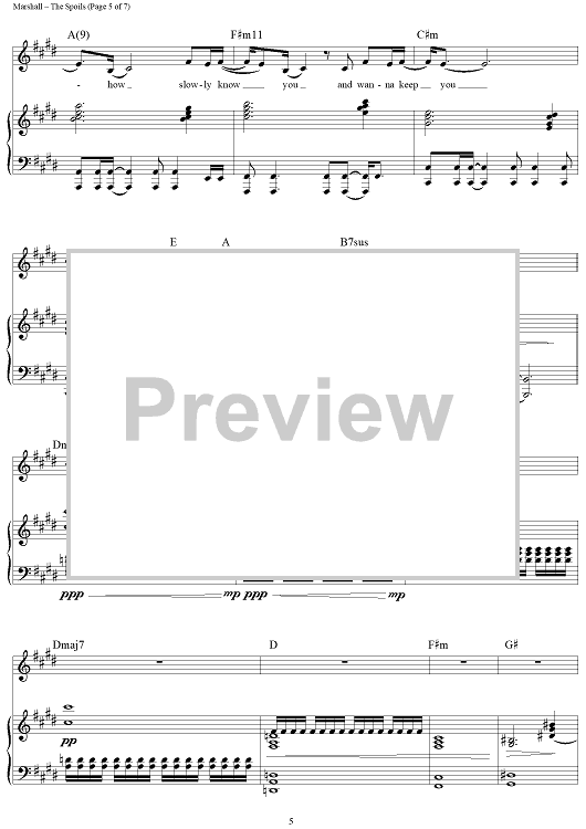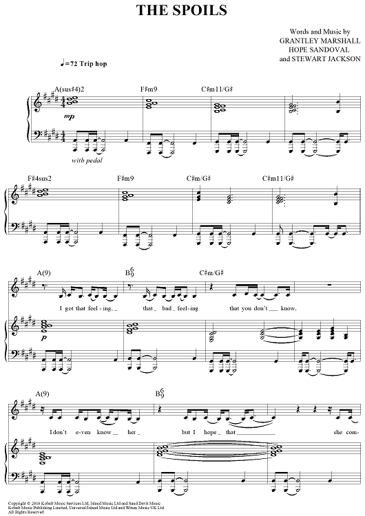Digital Sheet Music for The Spoils by Grantley Marshall, Massive Attack, Hope Sandoval, Stewart Jackson scored for Piano/Vocal/Chords; id:462437