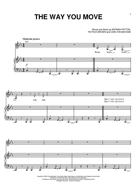 Digital Sheet Music for The Way You Move by Big Boi, OutKast, Carlton Mahone, Patrick Brown, Sleepy Brown scored for Piano/Vocal/Chords; id:374556