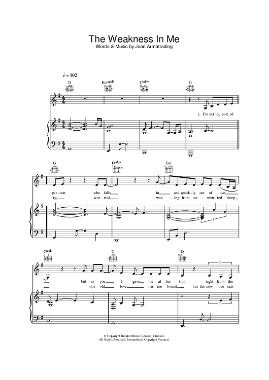Digital Sheet Music for The Weakness In Me by Joan Armatrading scored for Piano/Vocal/Chords; id:379364