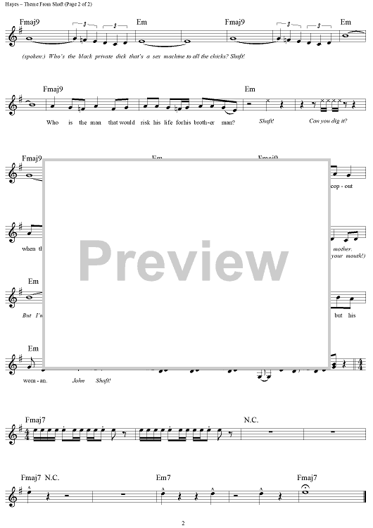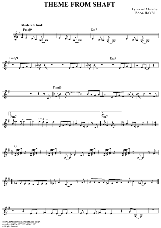 Digital Sheet Music for Theme from "Shaft" by Isaac Hayes scored for Lead Sheet; id:267327