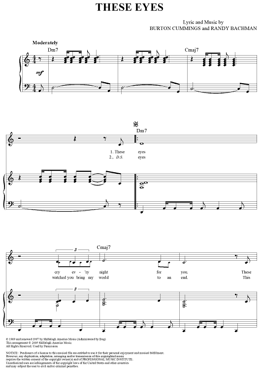 Digital Sheet Music for These Eyes by Burton Cummings, Randy Bachman, The Guess Who scored for Piano/Vocal/Chords; id:315281