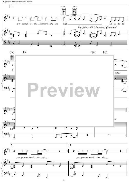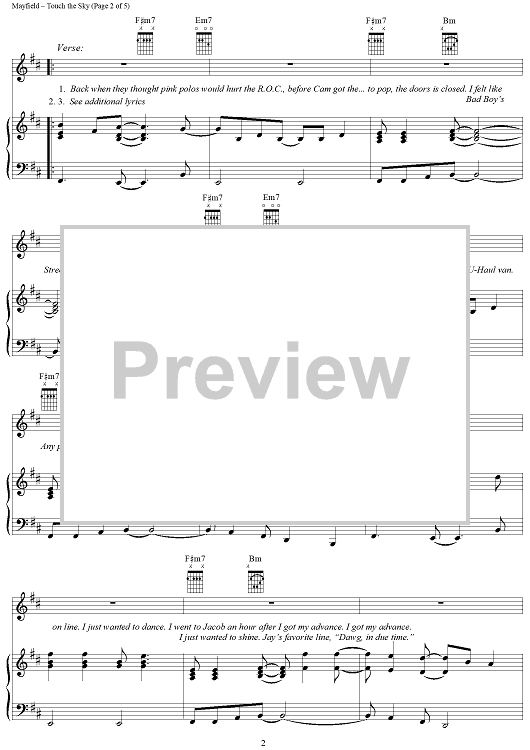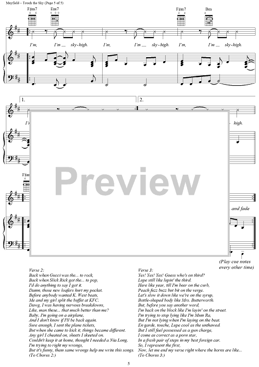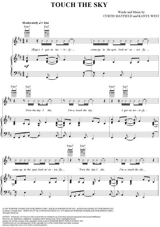 Digital Sheet Music for Touch the Sky by Curtis Mayfield, Kanye West scored for Piano/Vocal/Chords; id:320585