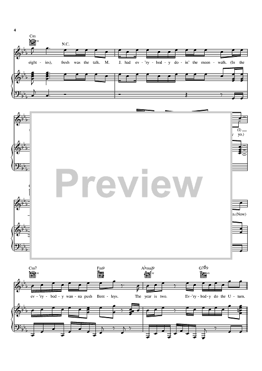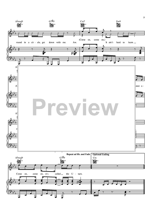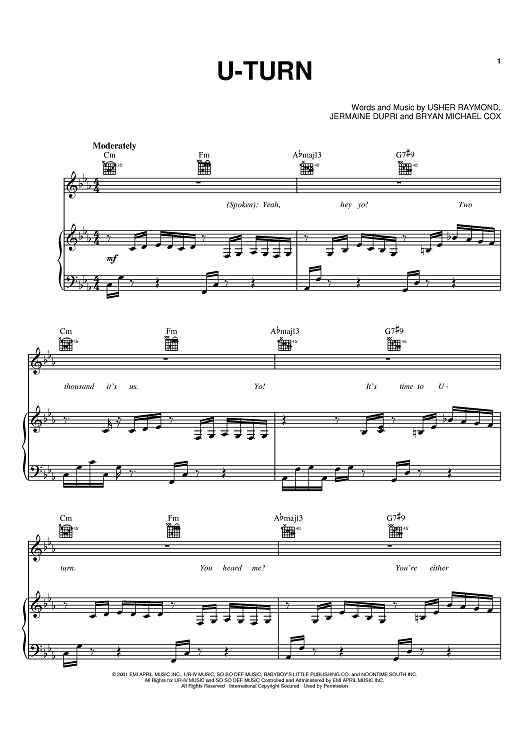 Digital Sheet Music for U-Turn by Usher, Jermaine Dupri, Bryan-Michael Cox scored for Piano/Vocal/Chords; id:368938