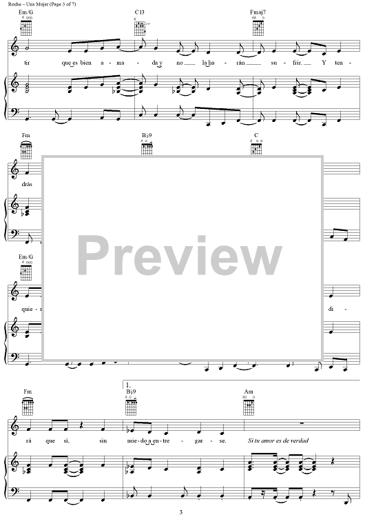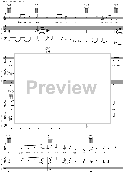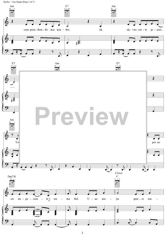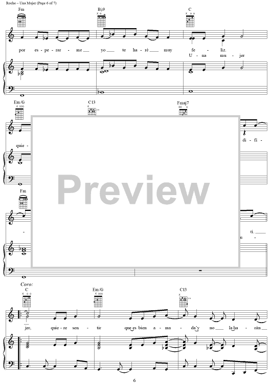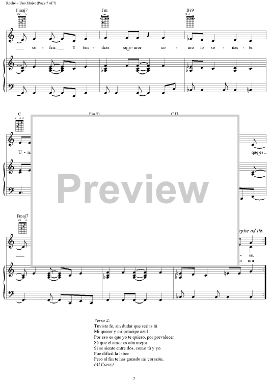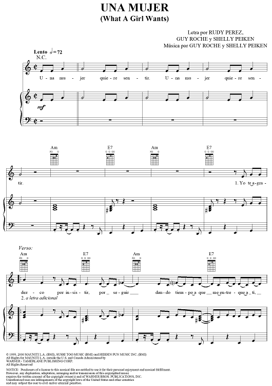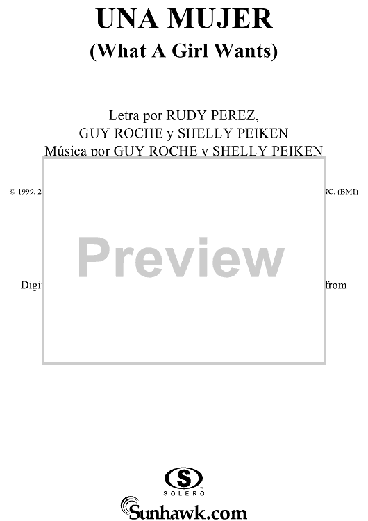 Digital Sheet Music for Una Mujer by Shelly Peiken, Guy Roche, Rudy Perez, Christina Aguilera scored for Piano/Vocal/Chords; id:285470