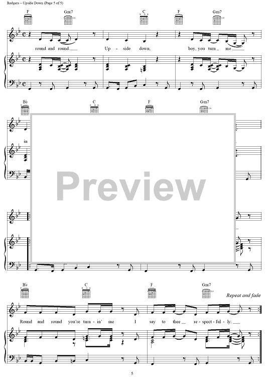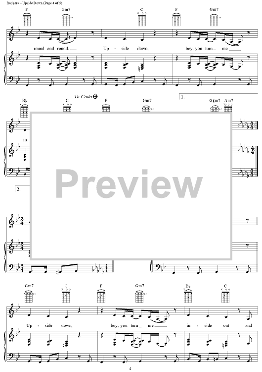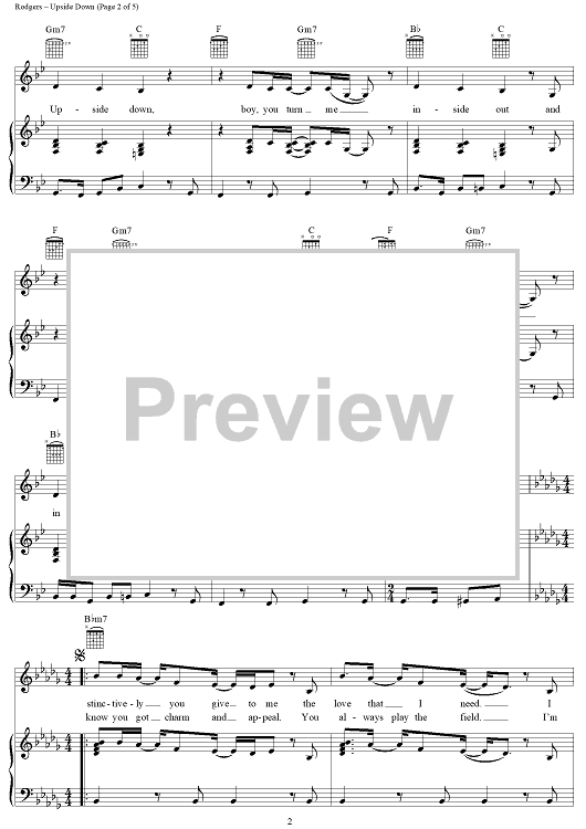 Digital Sheet Music for Upside Down by Diana Ross, Bernard Edwards, Nile Rogers scored for Piano/Vocal/Chords; id:124317