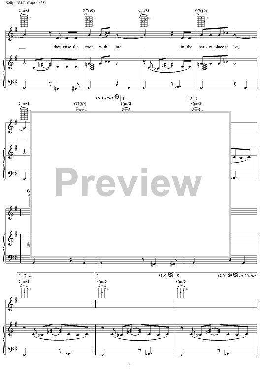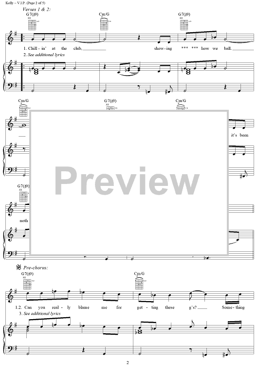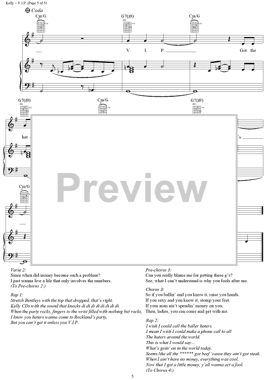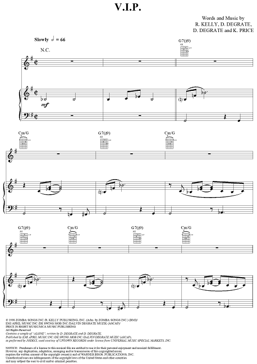 Digital Sheet Music for V.I.P. by R. Kelly, K. Price, Don Degrate, Dalvin Degrate scored for Piano/Vocal/Chords; id:141134
