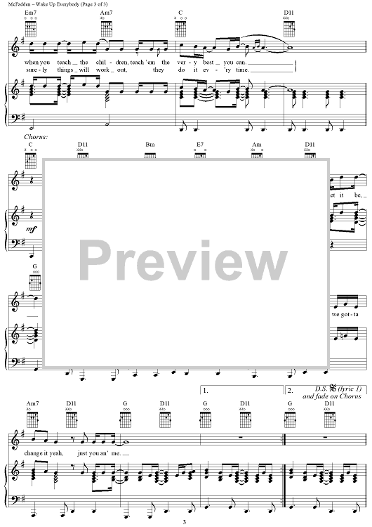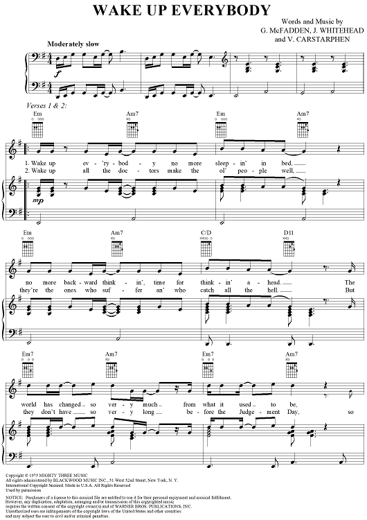 Digital Sheet Music for Wake Up Everybody by Harold Melvin and the Blue Notes, John Whitehead, Gene McFadden, Victor Carstarphen scored for Piano/Vocal/Chords; id:321275