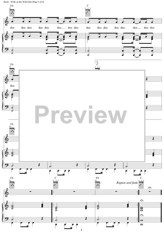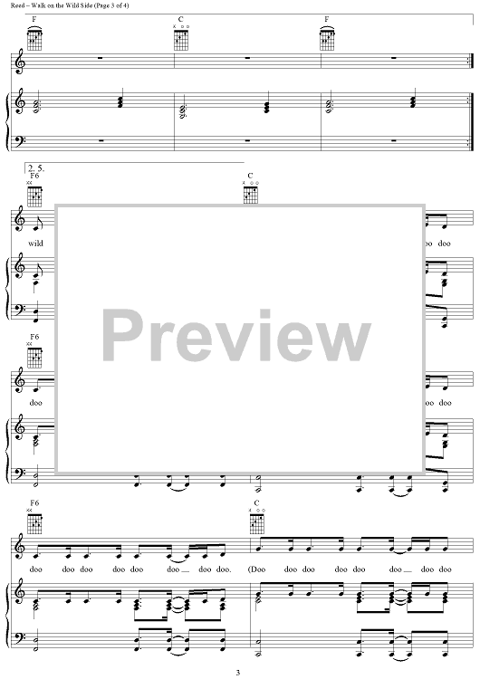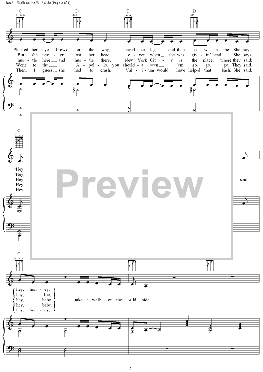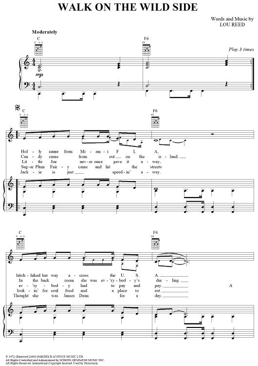 Digital Sheet Music for Walk On The Wild Side by Lou Reed scored for Piano/Vocal/Chords; id:367777