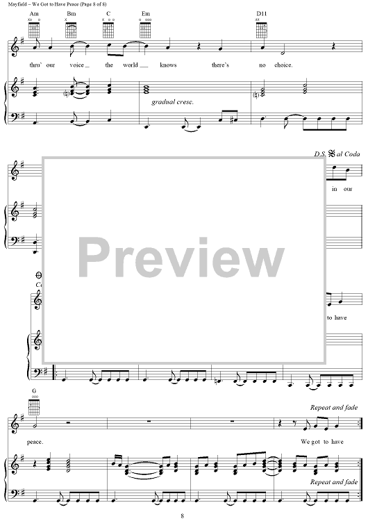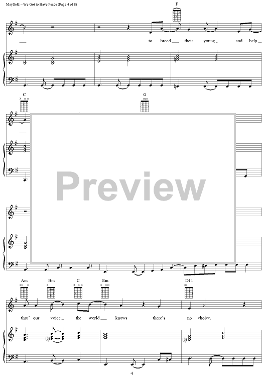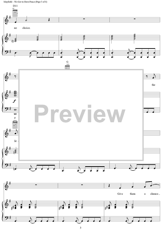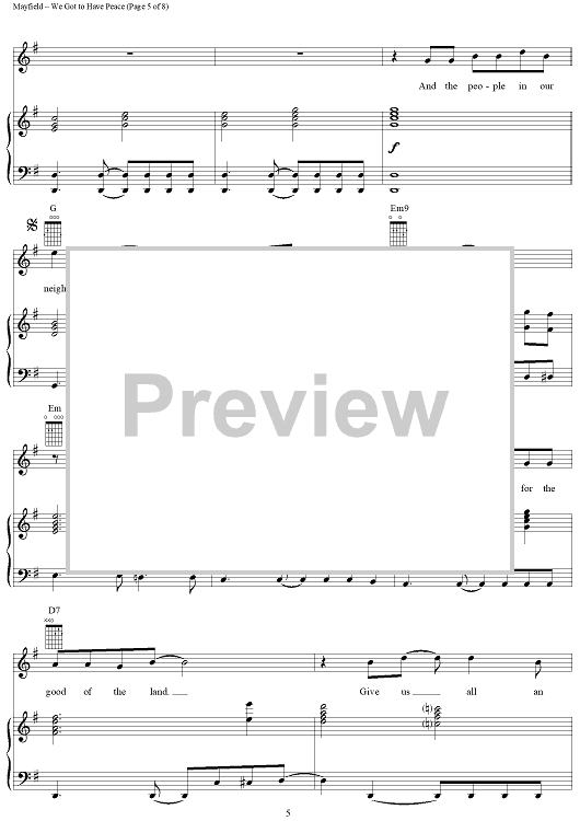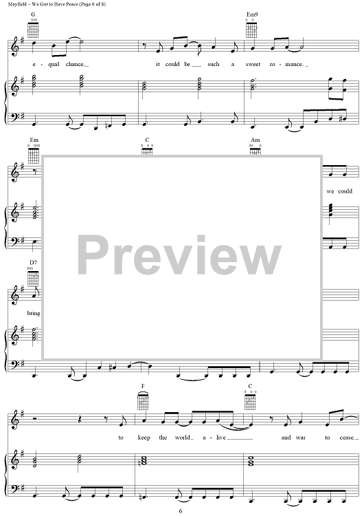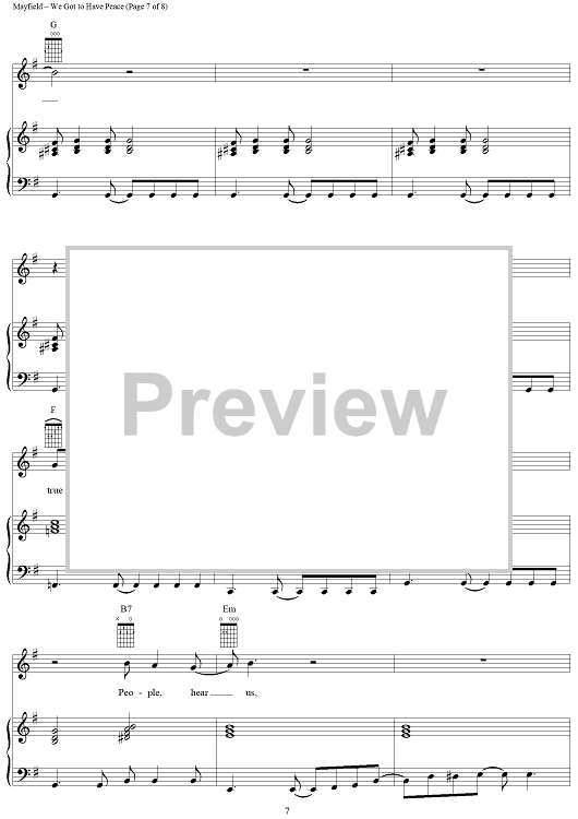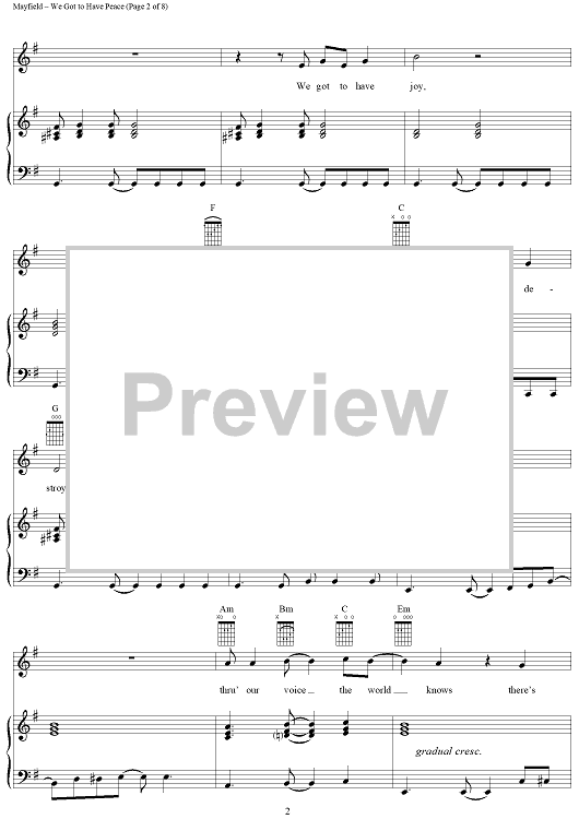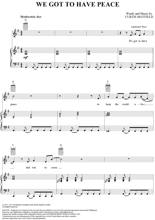 Digital Sheet Music for We Got to Have Peace by Curtis Mayfield scored for Piano/Vocal/Chords; id:120702