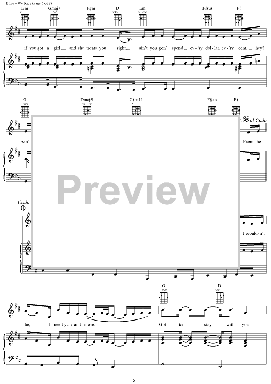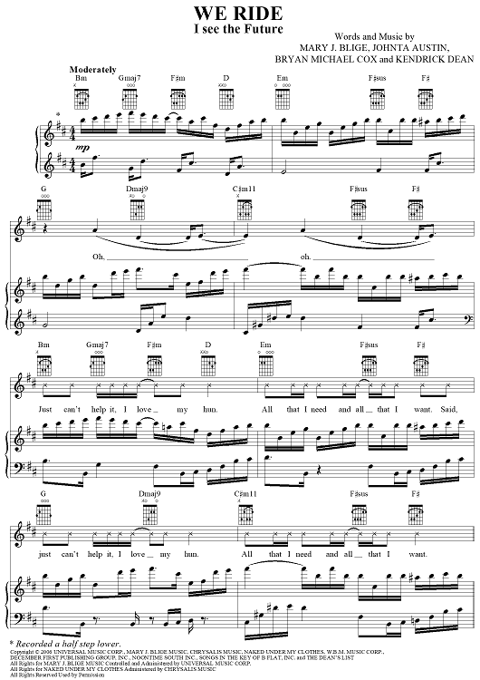 Digital Sheet Music for We Ride (I See The Future) by Mary J. Blige, Johnta Austin scored for Piano/Vocal/Chords; id:409900