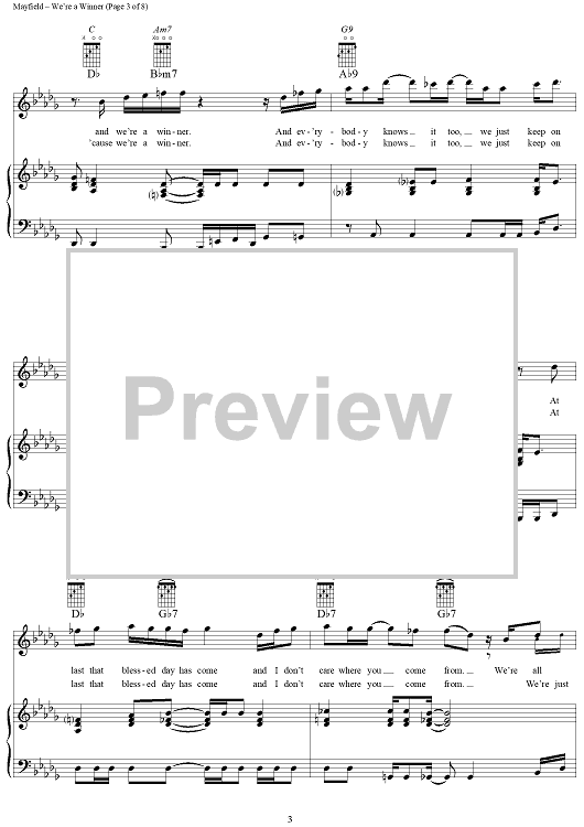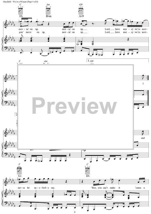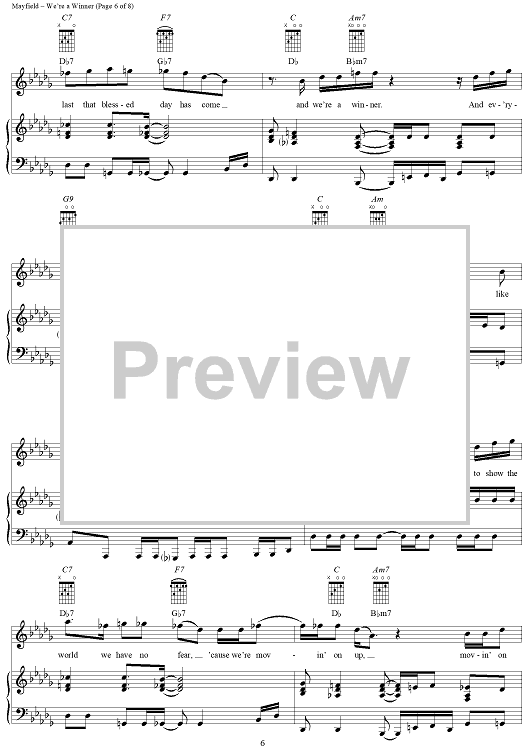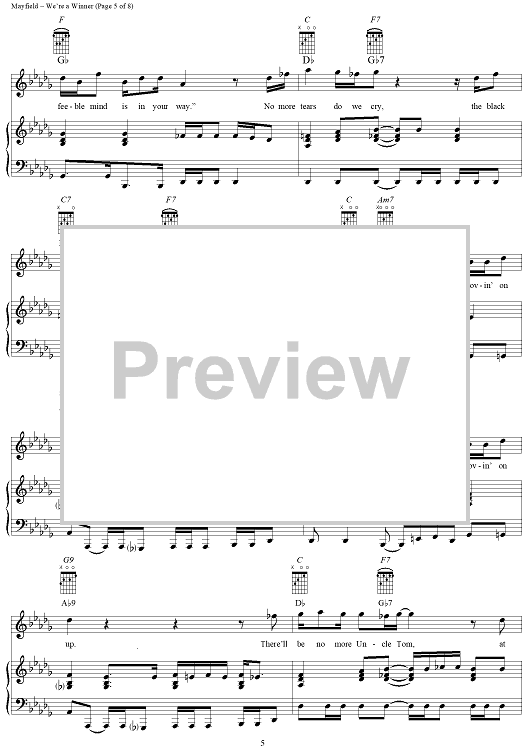 Digital Sheet Music for We're a Winner by Curtis Mayfield scored for Piano/Vocal/Chords; id:251516