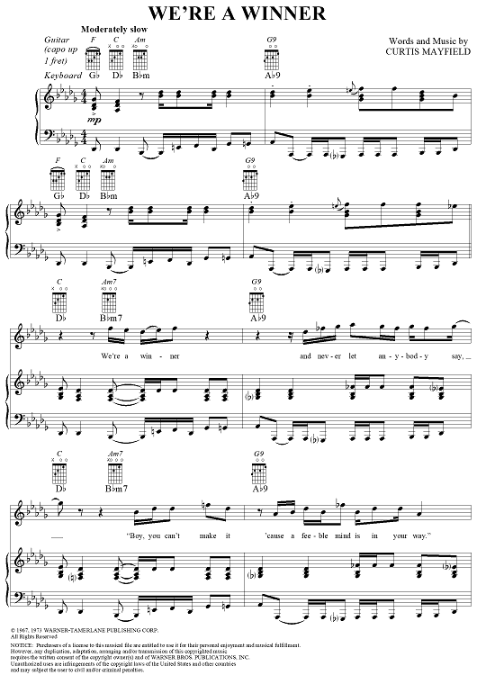 "We're a Winner" Sheet Music by Curtis Mayfield