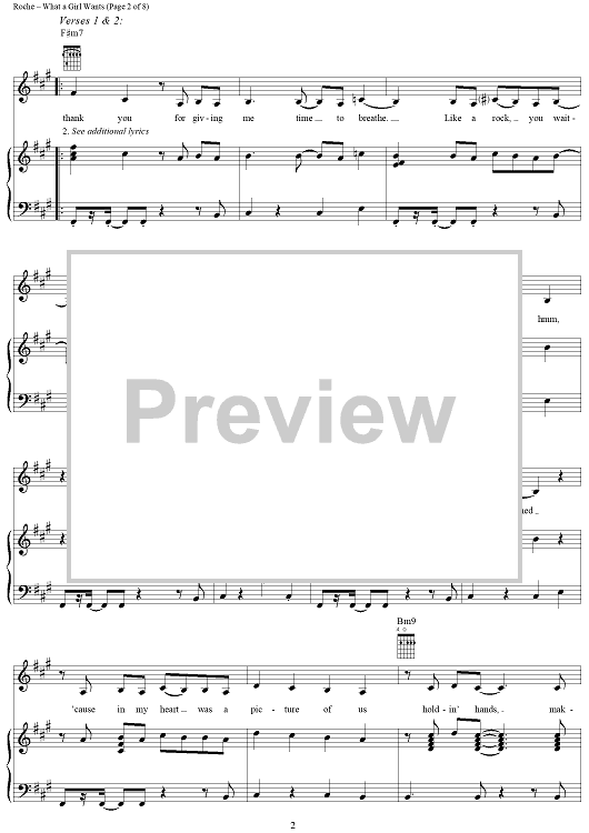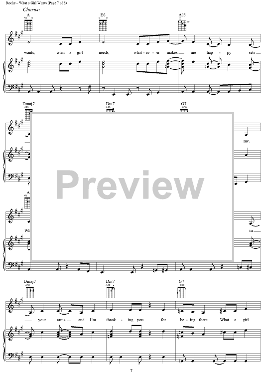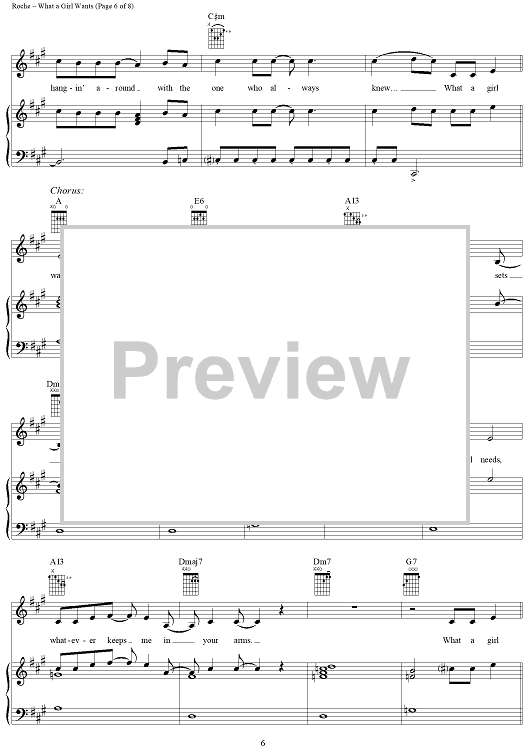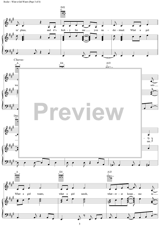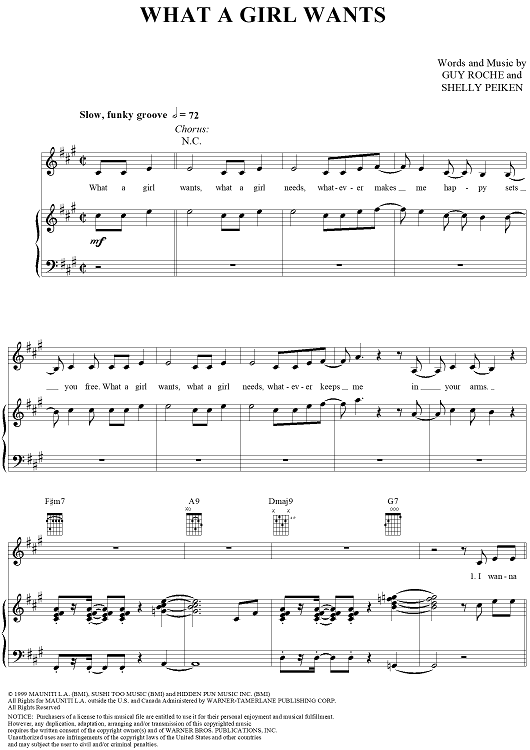 Digital Sheet Music for What a Girl Wants by Shelly Peiken, Guy Roche, Christina Aguilera scored for Piano/Vocal/Chords; id:186109